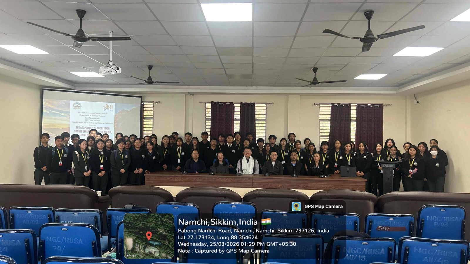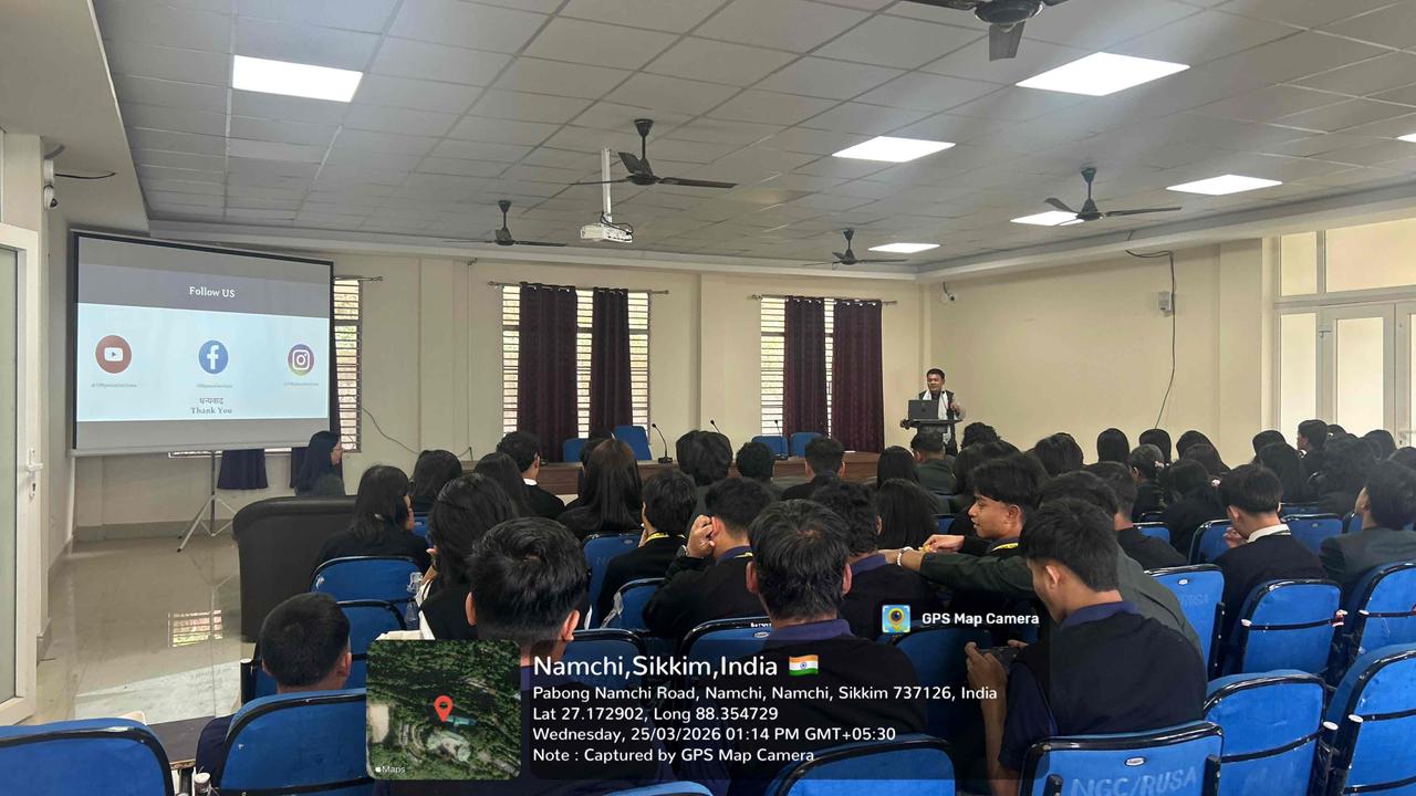 March 25th, Namchi: The 108 Peace Institute, in collaboration with the Department of Political Science of the Sikkim Government College based in Namchi, organised a talk on ‘The Geopolitics of Succession: Sacred Lineage, Strategic Stakes, and Global Implications’ delivered by Mr. Yeshi Dawa, a senior researcher at the 108 Peace Institute. The talk was attended by more than 80 students and the faculty members.
